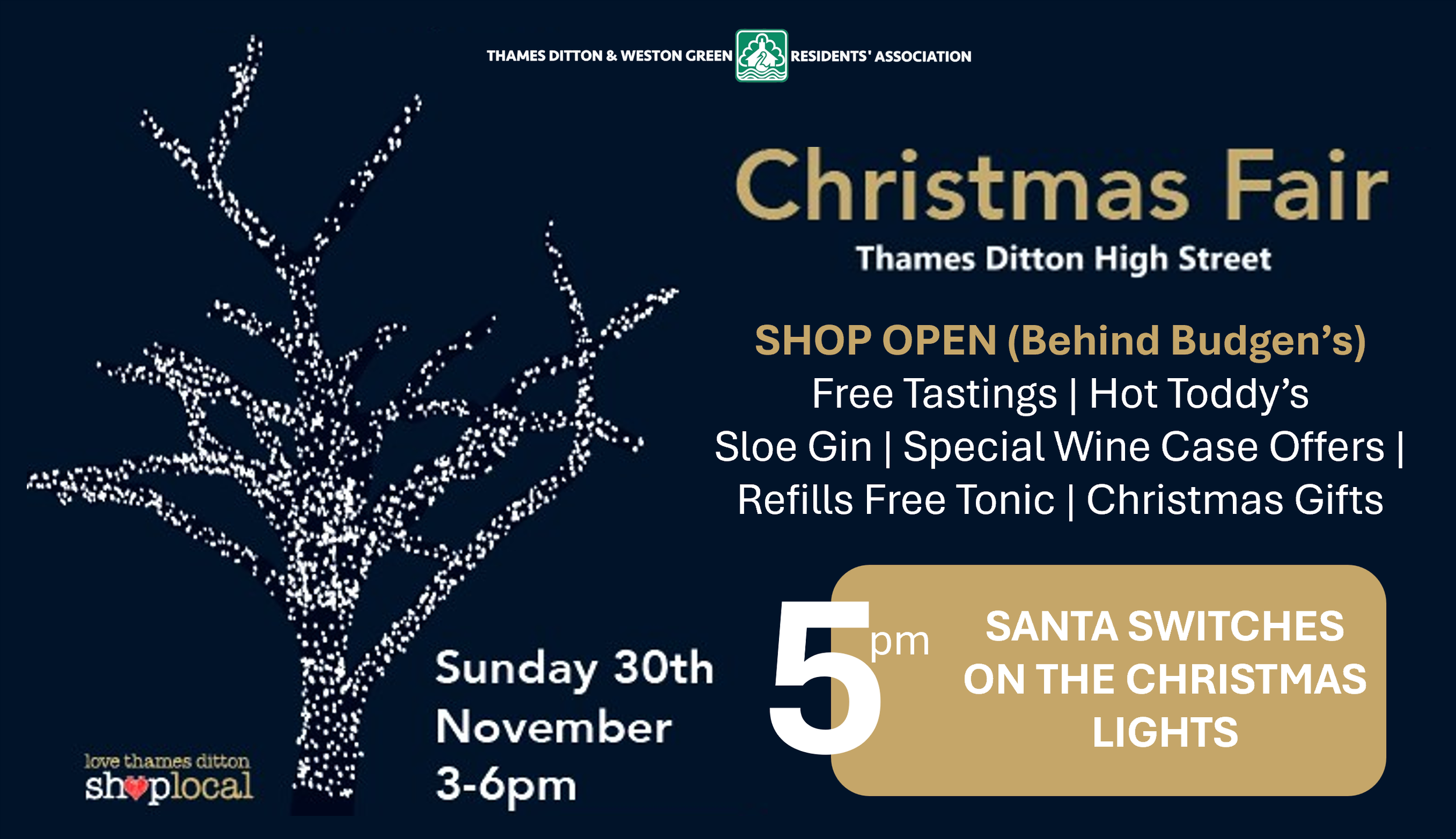 This year’s festivities take centre stage—quite literally—with live music and entertainment on the High Street’s central stage. Enjoy performances from the brilliant Ember Big Band, along with a fantastic line-up of local musicians and choirs that will keep the atmosphere buzzing all afternoon. Wander through the village and you’ll find local shops open with Christmas gifts, festive treats, warming drinks, and a host of visiting stalls bringing even more seasonal sparkle. A much-loved moment in the Thames Ditton calendar, this community celebration brings together neighbours, friends, families, and visitors of all ages. And of course, don’t miss the magical finale: Santa switching on the Christmas lights at 5pm—a true highlight of the afternoon.